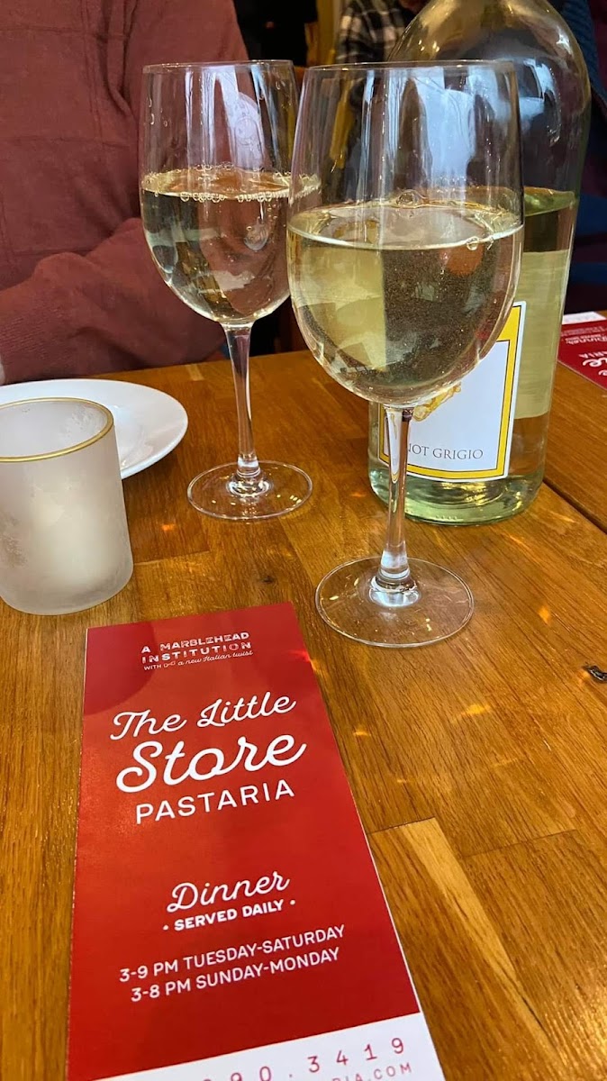“ Amazing little gem of a neighborhood place in the heart of historic Marblehead. Seats about 22 people total inside, so get your reservation locked down and bring your favorite bottle of wine to complement the meal. Some of the occasional negative reviews of this place are shameful and totally unworthy from my experience. The gnocchi in “the Little Store Gnocchi” dish was melt in your mouth perfection. Best I ever had in the USA (I have been to Italy 40+ times). The mushrooms, truffle oil and Alfredo-like sauce (it’s better than classic Alfredo … smoother, less sticky, less fatty, more garlicky - and scrumptious… it was so tasty, I could drink the remnants like a divine soup — and frankly, I did! The Veal Marsala was tender and seasoned perfectly, coated in tasty mushrooms and a dark Marsala sauce that was done with just the right balance of sweet and savory. My wife had the Seafood Di Mare that was piled high in a skillet full of calamari, shrimp, mussels and scallops on top of homemade fettuccine. The white wine sauce this was bathing in was a little tame for the magnitude of the dish - good, just not spectacular. All in all, we loved our food so much that we ordered a Haddock Francese “to go” so we can have it the following night and expand our Little Store palate. The ambiance is cute and quaint, old school pictures on the wall in unmatched frames that you would find at a garage sale. I felt like I was in a neighborhood ristorante in Tuscany. We saw only 1 employee all night and she was a hustler (in a great way). She did everything … never stopped buzzing around to take care of a full restaurant— not to mention a thriving takeout business (folks … please tip this gal even when ordering takeout - she is busting her tail for you!). I love the BYOB approach because I always have lots of wine at the house - I don’t need to spend an additional $100 on a $40 bottle of wine when I go out. One last comment - this is an adorable romantic place - unless the guests who visit make it otherwise. I was there with my wife, as were several other husbands enjoying a relatively quiet night out with their significant others. One younger group of 5 friends took the center table, and as the alcohol consumption rose, the conversation volume crescendoed to the point of shouting just to be heard across the table. A neighboring gentleman intervened and asked one particular girl to please stop shouting. He was right to do this - and to the girl’s credit — she apologized, took it down a couple notches, and the rest of the evening was so pleasant for everyone. I am appreciative that she took it so well (enjoying one’s self is a sign and the GOAL of any great restaurant). I say this just to remind people - restaurants are only as pleasant and romantic as the guests who honor them. By all means - celebrate life and friendship … but be wary of your surroundings when your neighbors are just an arm’s length away. God bless the Little Store — Marbleheaders are sooooo lucky to have her ! ”