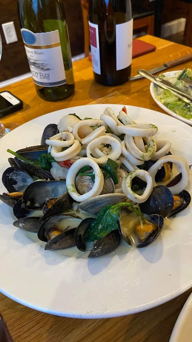 “ The food was absolutely delicious with wonderful flavor. In our first dish the seafood was plentiful and indeed the star of the dish, with the supporting risotto well cooked. The second dish we chose for simplicity and it didn't disappoint, with a solid ravioli supporting the star of this dish, the marinara sauce. The woman who squeezed us in (we didn't have reservations), was wonderful and may have been the owner. Delightfully authentic and beautifully done Italian food. ”