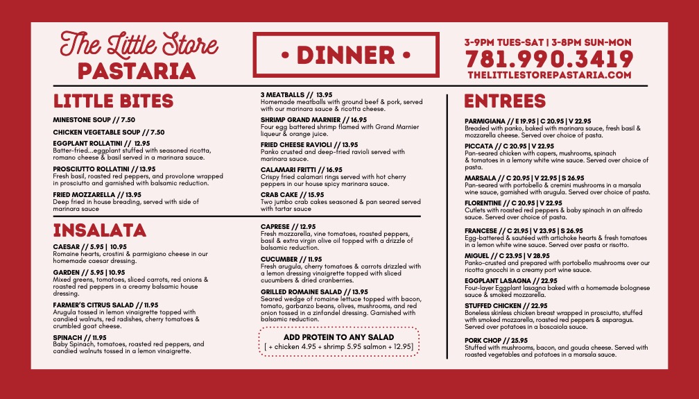 Stuffed with ricotta, romano cheese, & basil, served in a marinara sauce.